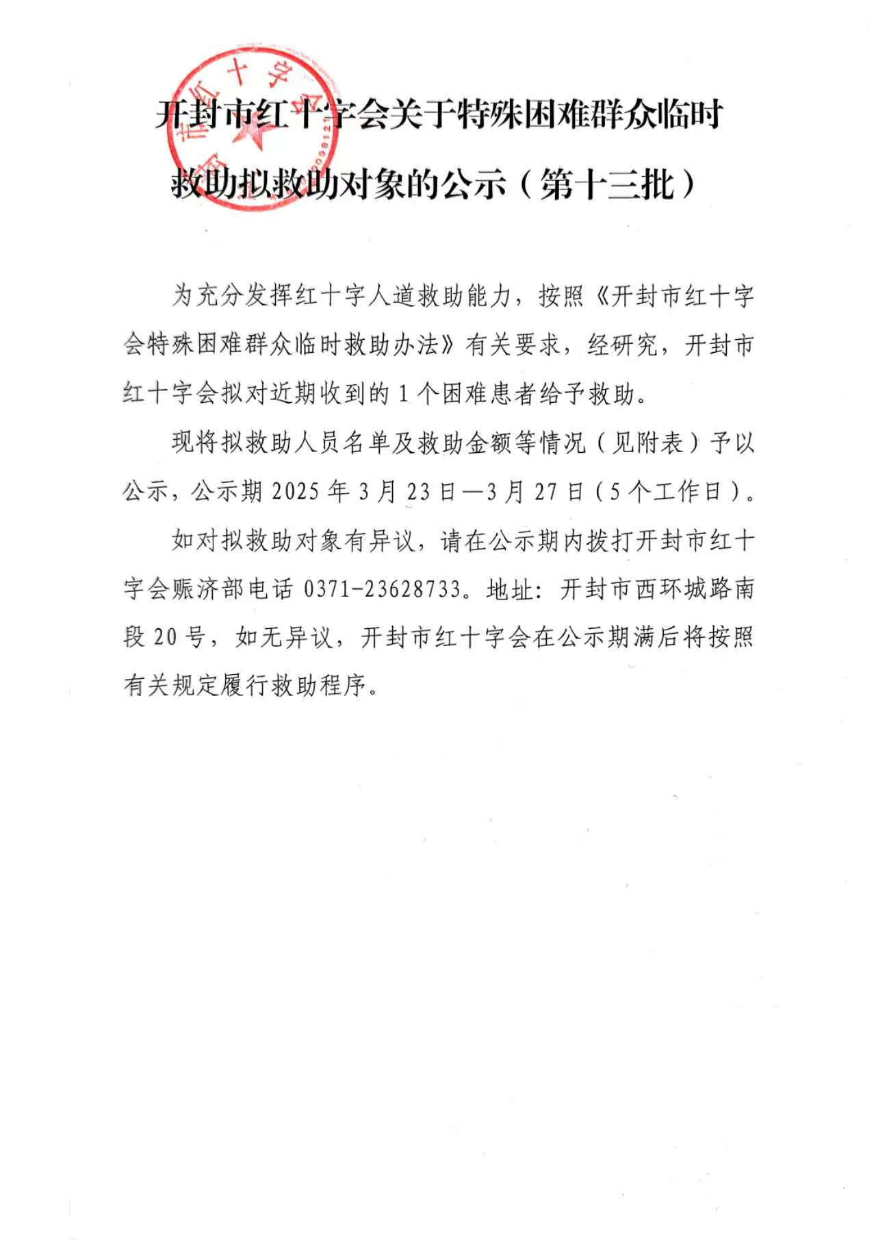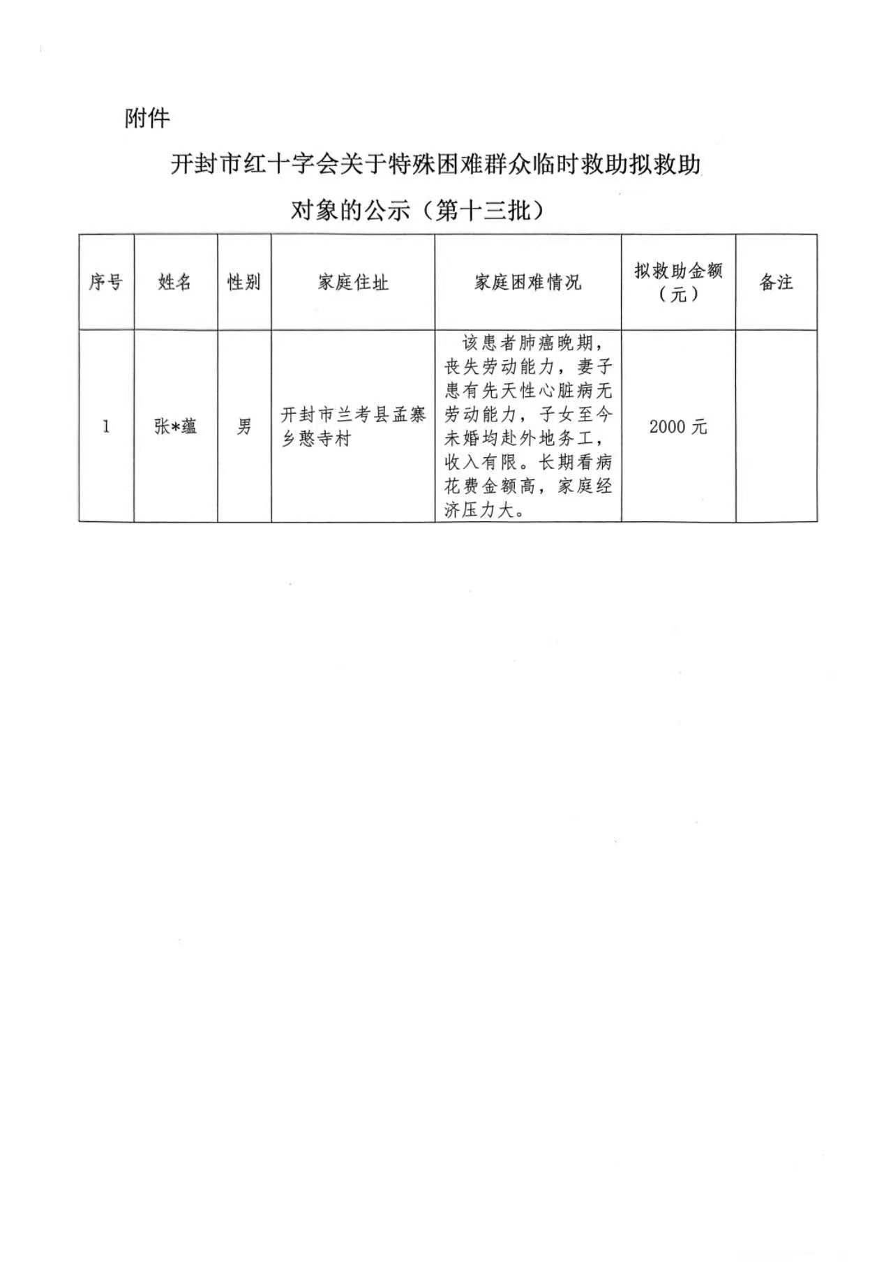 关于特殊困难群众临时救助拟救助对象的公示(第十三批)